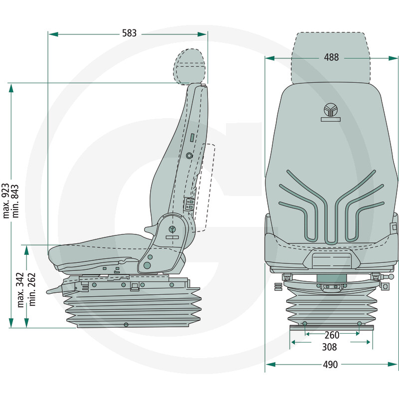 • Super komfortabls sēdeklis ar pneimatisko piekari un 12V kompresoru
