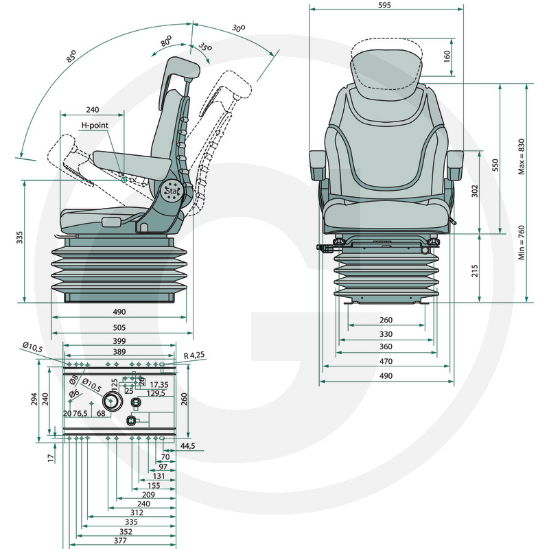 ● Priekšējā / aizmugurējā izolators, hidraulisks