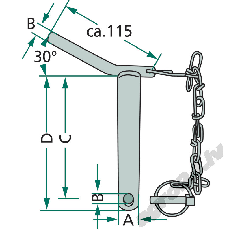 Centrālās atsaites tapa ar sprostu, Cat.2, D=138 mm
