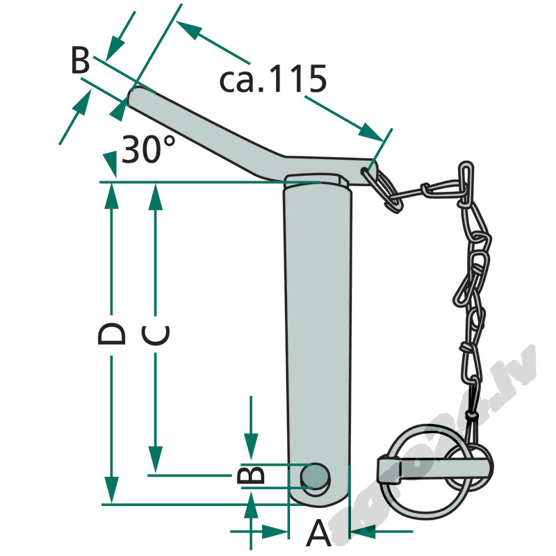 Centrālās atsaites tapa ar sprostu, Cat.2, D=151 mm